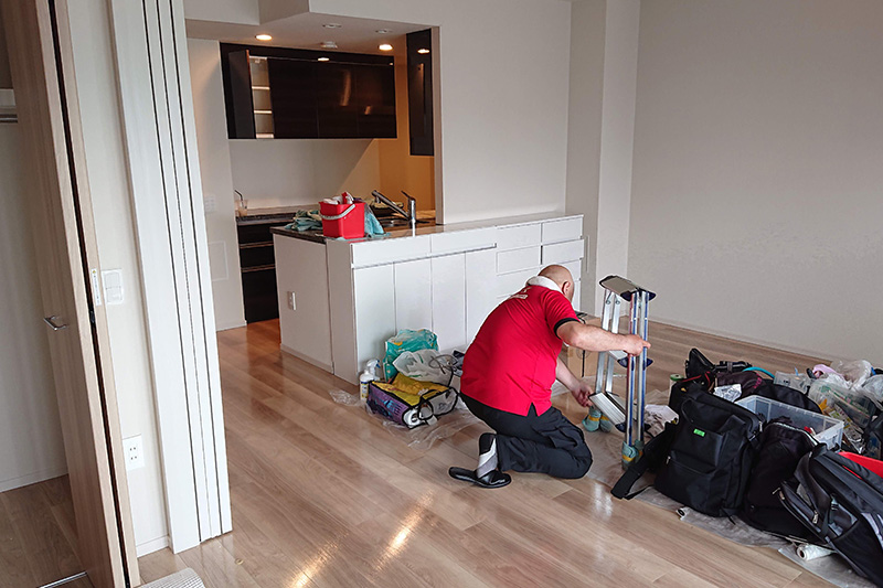 ご自宅に上がる際の靴下の履き替え、家具や床への養生、作業後の後片付け、そして丁寧な言葉づかいと接し方。