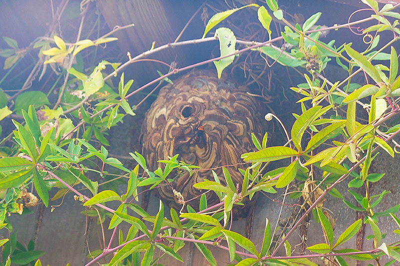 蜂は刺される危険があり、特にスズメバチは命に関わる事故につながることもあります。庭木や軒下、ベランダなどに巣を作ることが多く、刺激すると集団で襲ってくる恐れがあります。巣の大きさや設置場所を確認し、安全に配慮しながら駆除を行います。早めの対応が重要です。