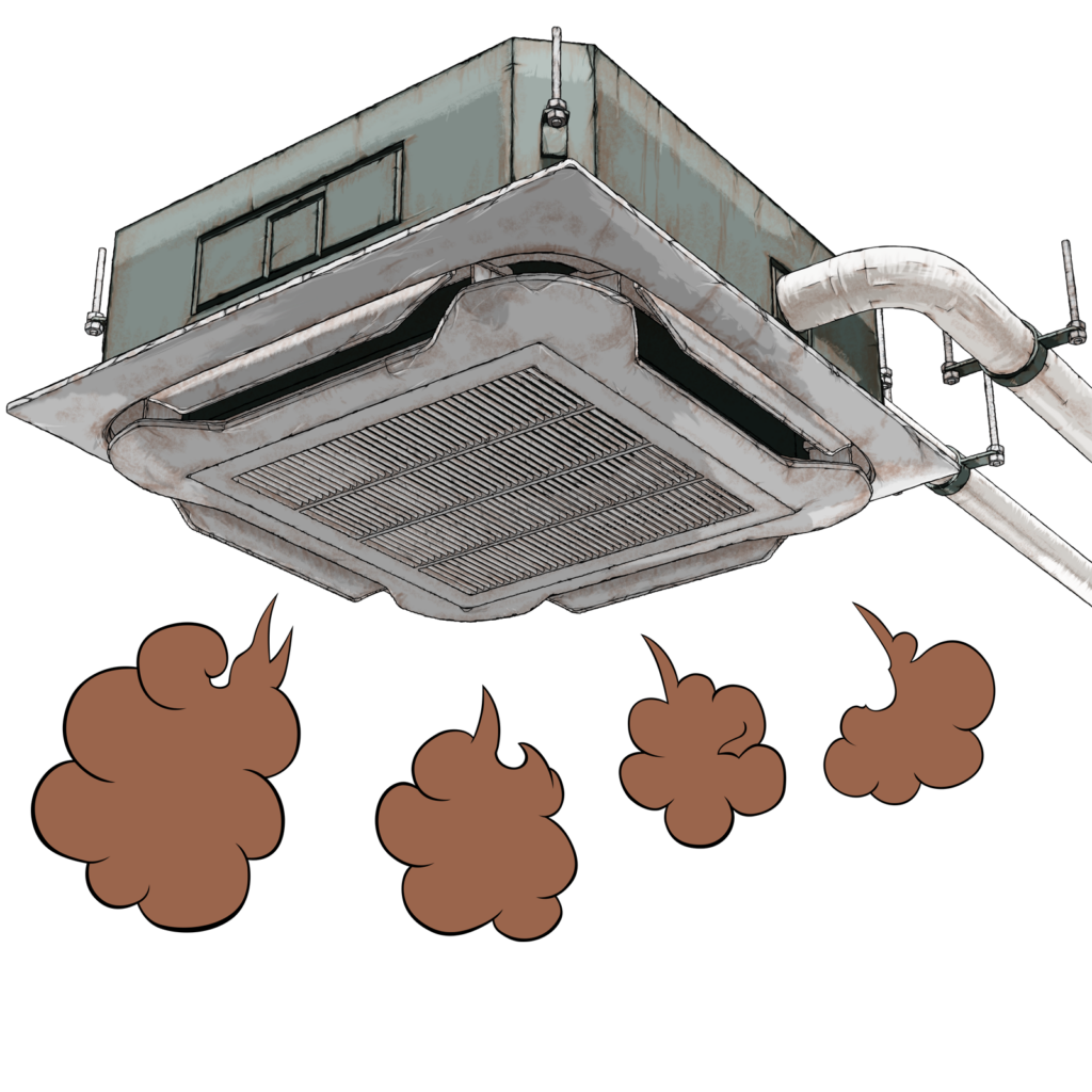 業務用エアコンは家庭用と同じく、ホコリやチリ、カビなどで覆われ汚れてしまいます。