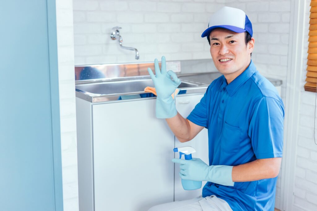 作業時には必ずゴム手袋を着用して作業致しましょう。洗剤に直接触れると手荒れの原因になってしまいます。