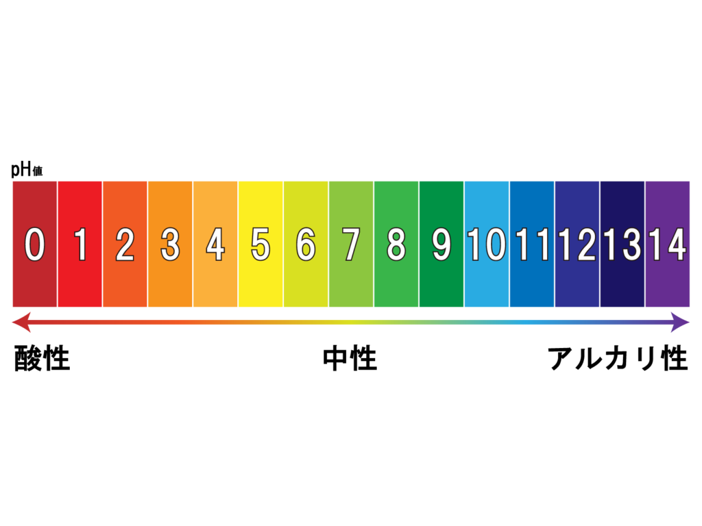 - 汚れには性質があり、下図の表のように、ペーハーという単位で表されます。