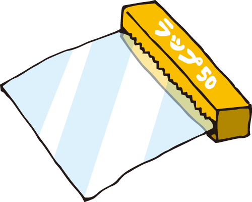 吹き付けたキッチンハイターを、乾かないようにラップで覆いましょう。効果的に黒カビを漂白洗浄が出来ます。