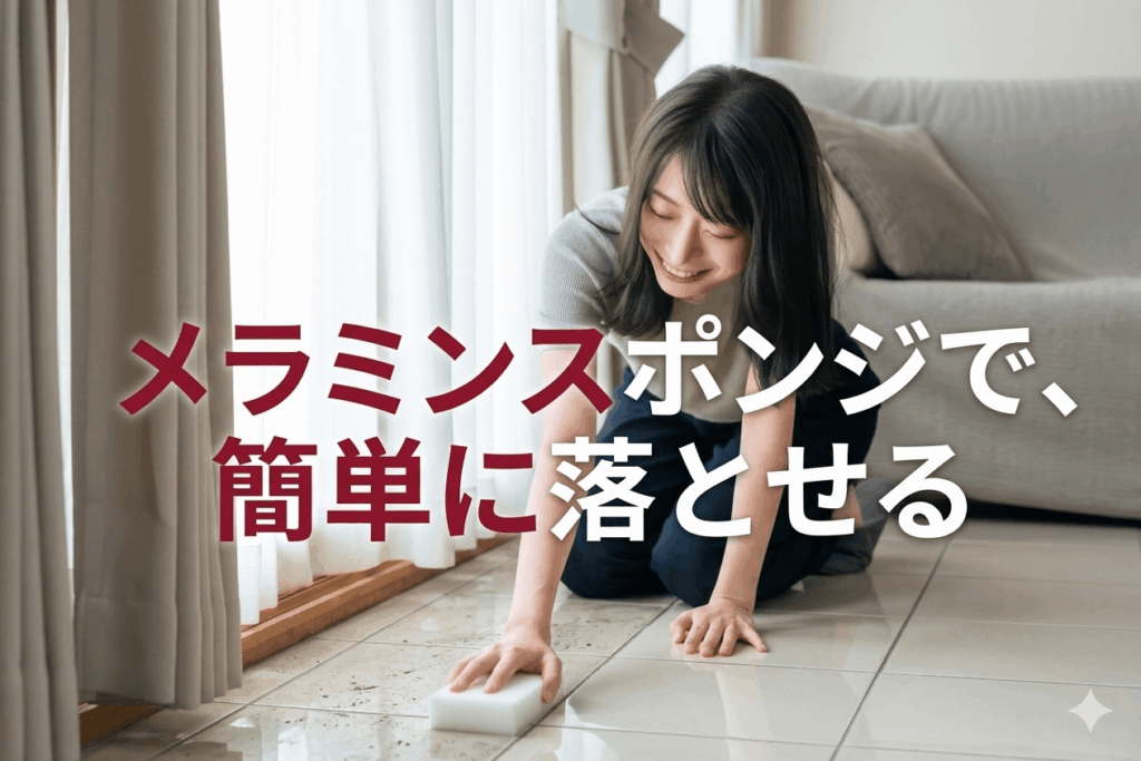 次にモップで取り除けなかった汚れを、メラミンスポンジを使用してお掃除していきましょう。