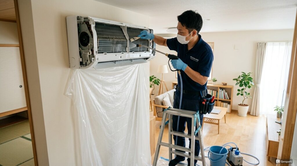 ① 作業内容が明記されているか 「フィルター清掃のみ」と「内部高圧洗浄込み」では全く違います。何をどこまでやってくれるのか、事前に書面か画面上で確認必須。