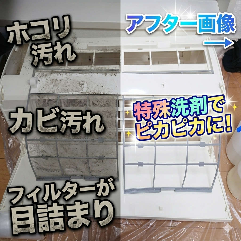汚れたままのエアコンは、冷暖房効率を落とし、電気代を上げ、カビを部屋中に撒き散らし、体調を崩す原因にもなる。