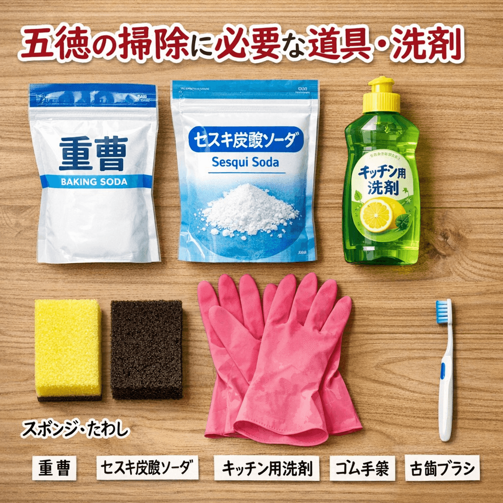 次に実践に入っていきましょう。まず必要な道具、洗剤についてお話ししていきます。