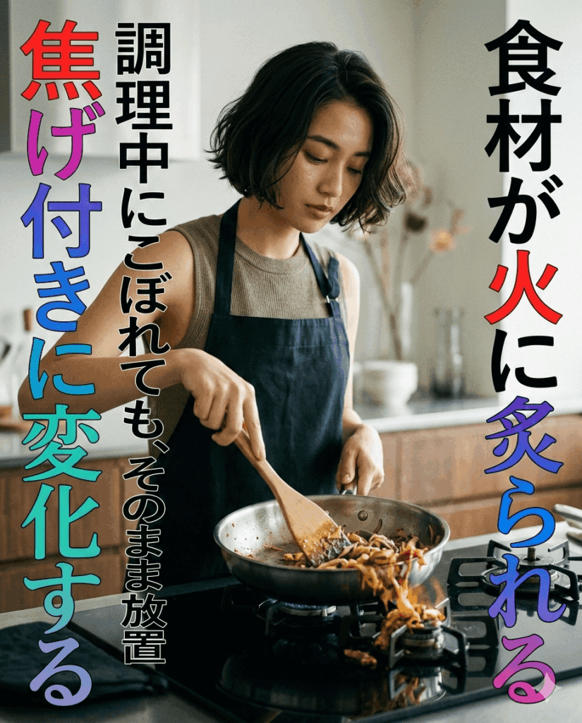 ズバリ焦げ付きです。焦げ付きの元となる原因は、油や調味料、料理した際の汁やタレ。